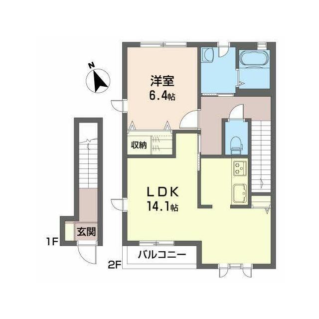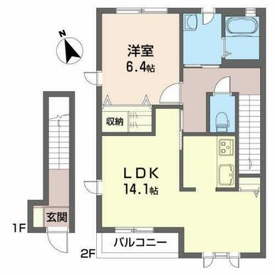 | 間取り | 1LDK(LDK14.1帖 洋室6.4帖) | 主要採光面 | 南 |