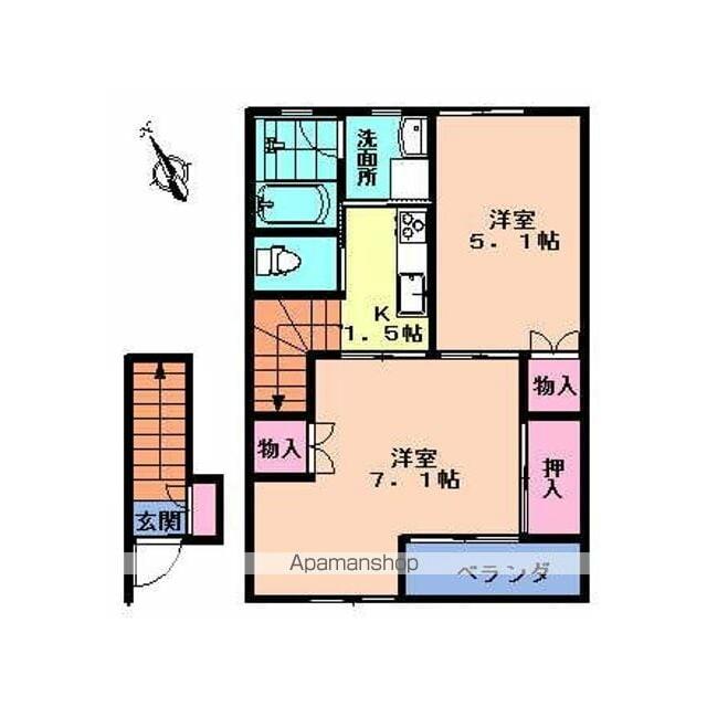 | 間取り | 2K(K1.5 洋7.1 洋5.1) | 主要採光面 | 南西 |