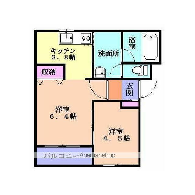 | 間取り | 2K(K3.8 洋6.4 洋4.5) | 主要採光面 | - |