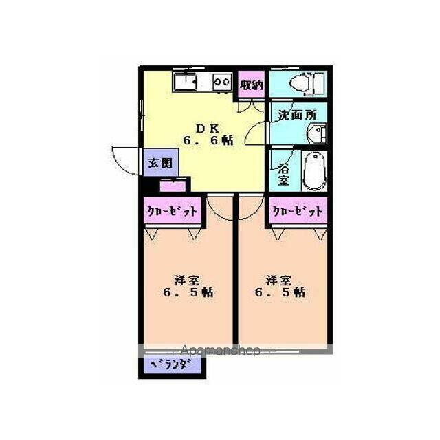 | 間取り | 2DK(DK6.6 洋6.5 洋6.5) | 主要採光面 | 西 |