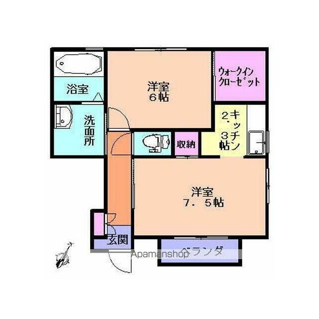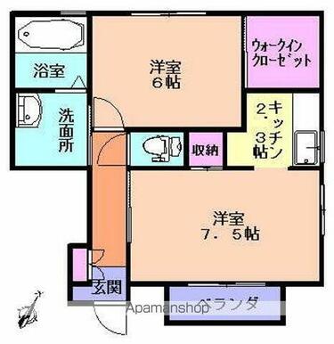 | 間取り | 2K(K2.3 洋7.5 洋6) | 主要採光面 | 南 |