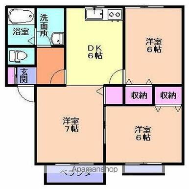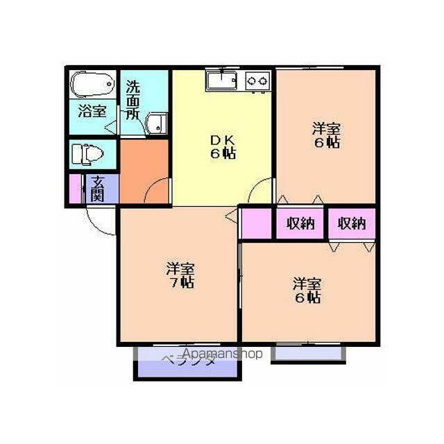 | 間取り | 3DK(DK6 洋7 洋6 洋6) | 主要採光面 | 南 |