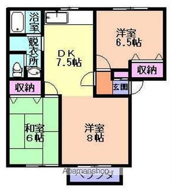| 間取り | 3DK(DK7.5 洋6.5 洋8 和6) | 主要採光面 | 南 |