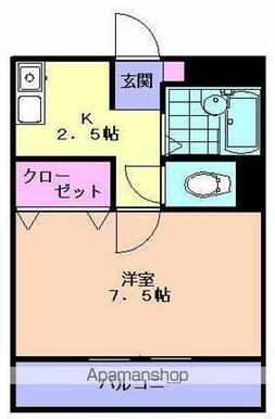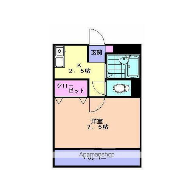 | 間取り | 1K(K2.5 洋7.5) | 主要採光面 | 西 |