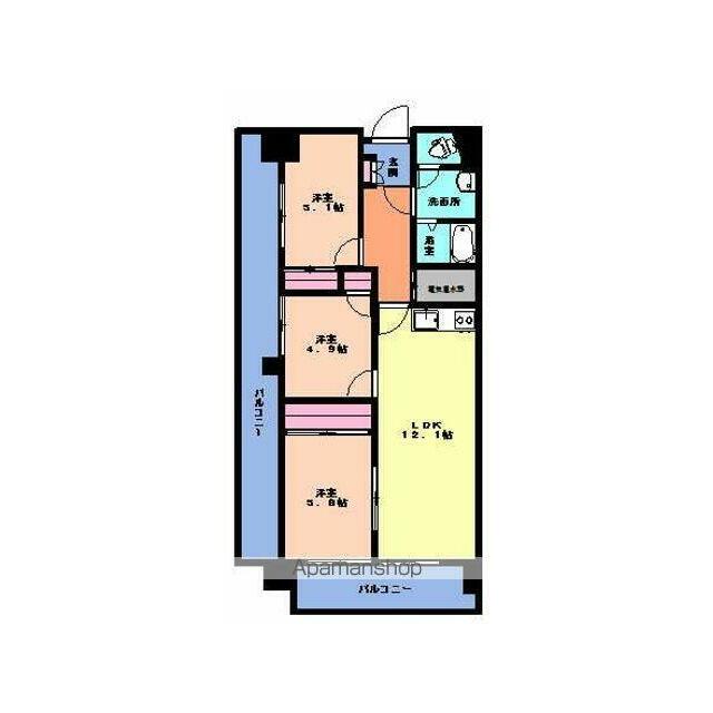 | 間取り | 3LDK(LDK12.1 洋4.9 洋5.1 洋5.8) | 主要採光面 | 南東 |