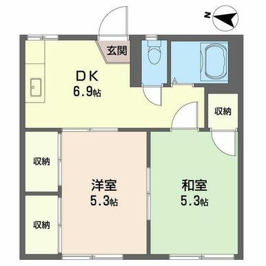 | 間取り | 2DK(DK6.9帖 洋室5.3帖 和室5.3帖) | 主要採光面 | 西 |