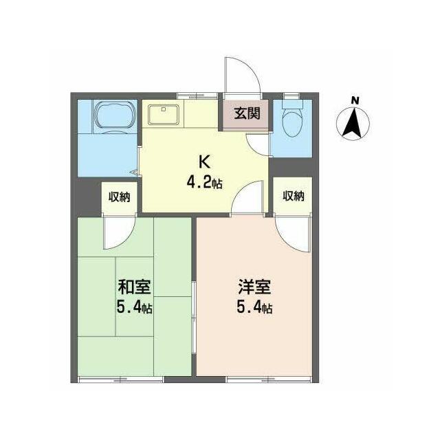 | 間取り | 2K(K4.2帖 洋室5.4帖 和室5.4帖) | 主要採光面 | 南 |