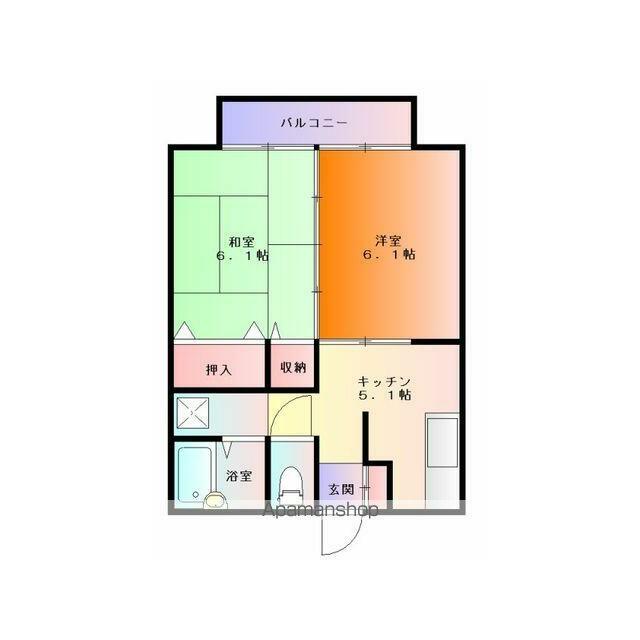| 間取り | 2K(K5.1 洋6.1 和6.1) | 主要採光面 | 東 |
