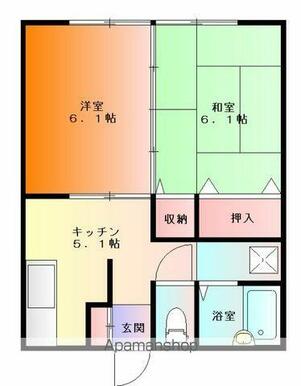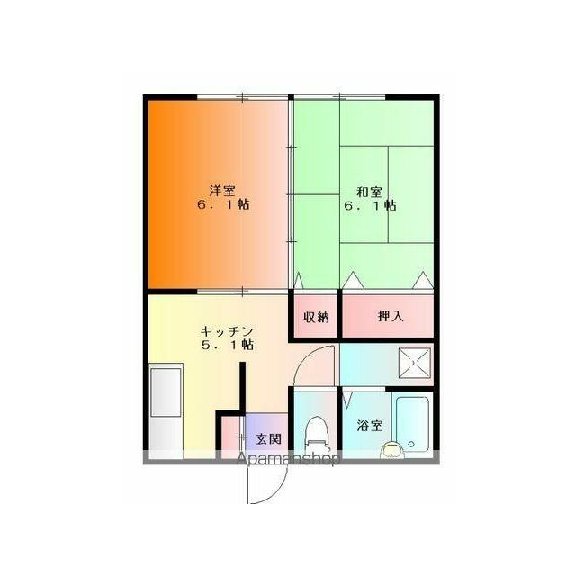 | 間取り | 2K(K5.1 洋6.1 和6.1) | 主要採光面 | 東 |