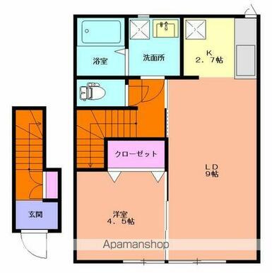 | 間取り | 1LDK(K2.7 LD9 洋4.5) | 主要採光面 | 南 |