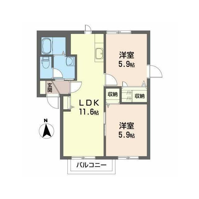 | 間取り | 2LDK(LDK11.6帖 洋室5.9帖 洋室5.9帖) | 主要採光面 | 南西 |