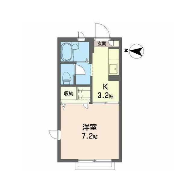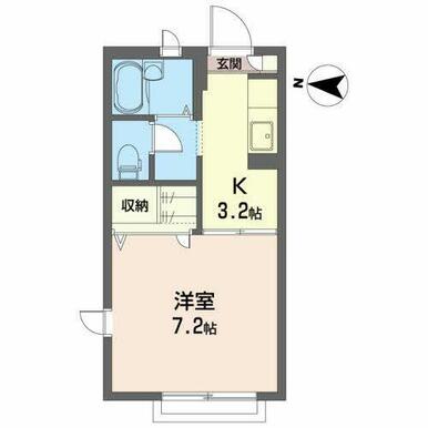 | 間取り | 1K(K3.2帖 洋室7.2帖) | 主要採光面 | 西 |